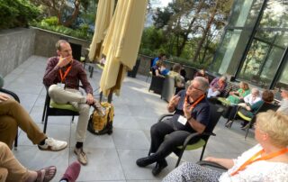 Sous un soleil radieux, avec de la tresse tchèque et une boisson ressemblant à du café, la matinée a commencé par une discussion entre nous, les Suissesses, et une coordinatrice d’une équipe hollandaise sur les horaires de travail. En Hollande, le temps de travail est de 36 heures. Il est également intéressant de noter qu’en tant que théologienne calviniste, elle dirige une équipe interreligieuse.